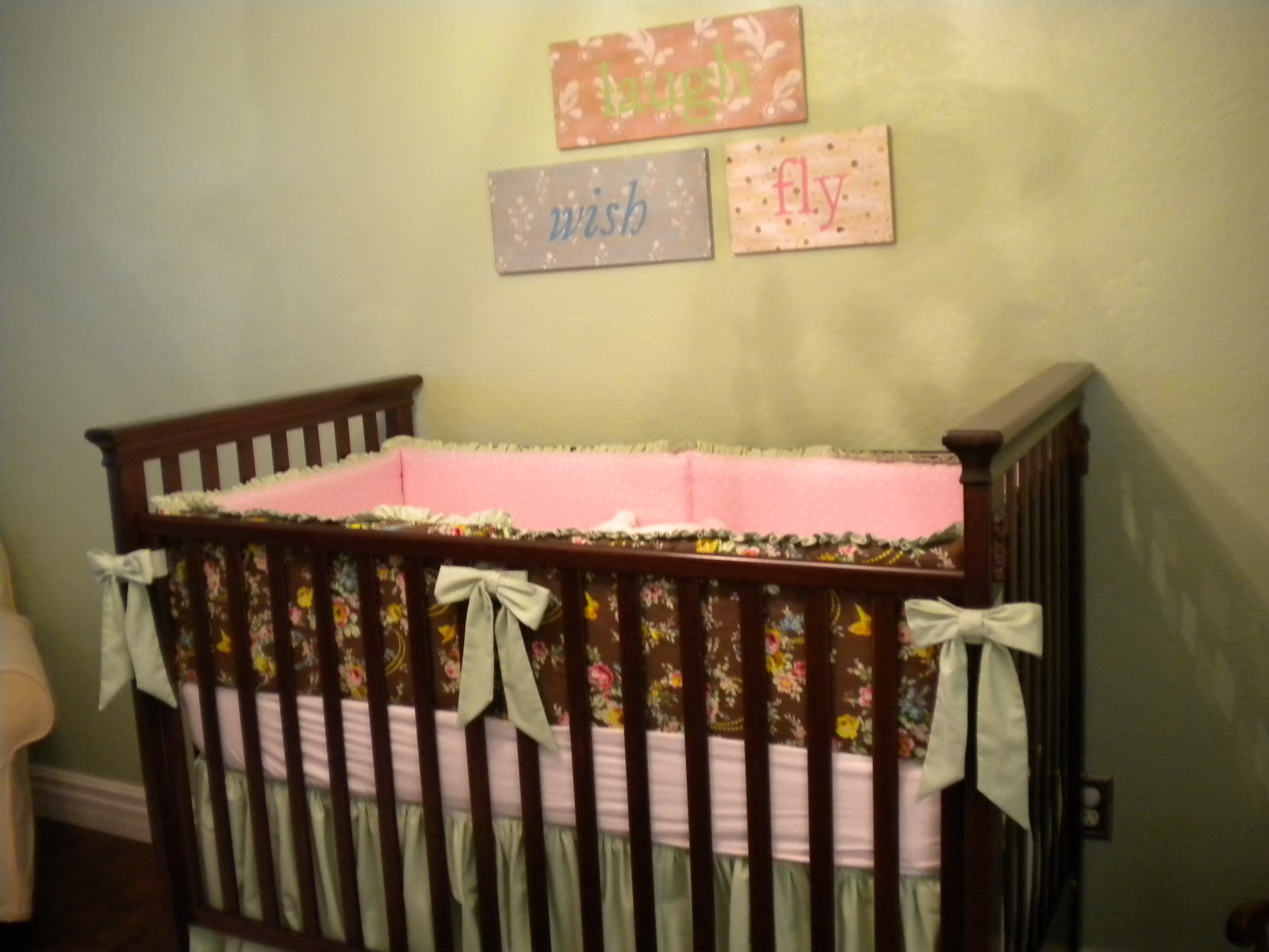 The day we arrived home from the hospital, my mother-in-law, Linda, had put Bellen's crib bedding in her room. It was a sweet surprise! It is more gorgeous than I even imagined! It is so girlie and fancy....Thank you Linda! We love it!